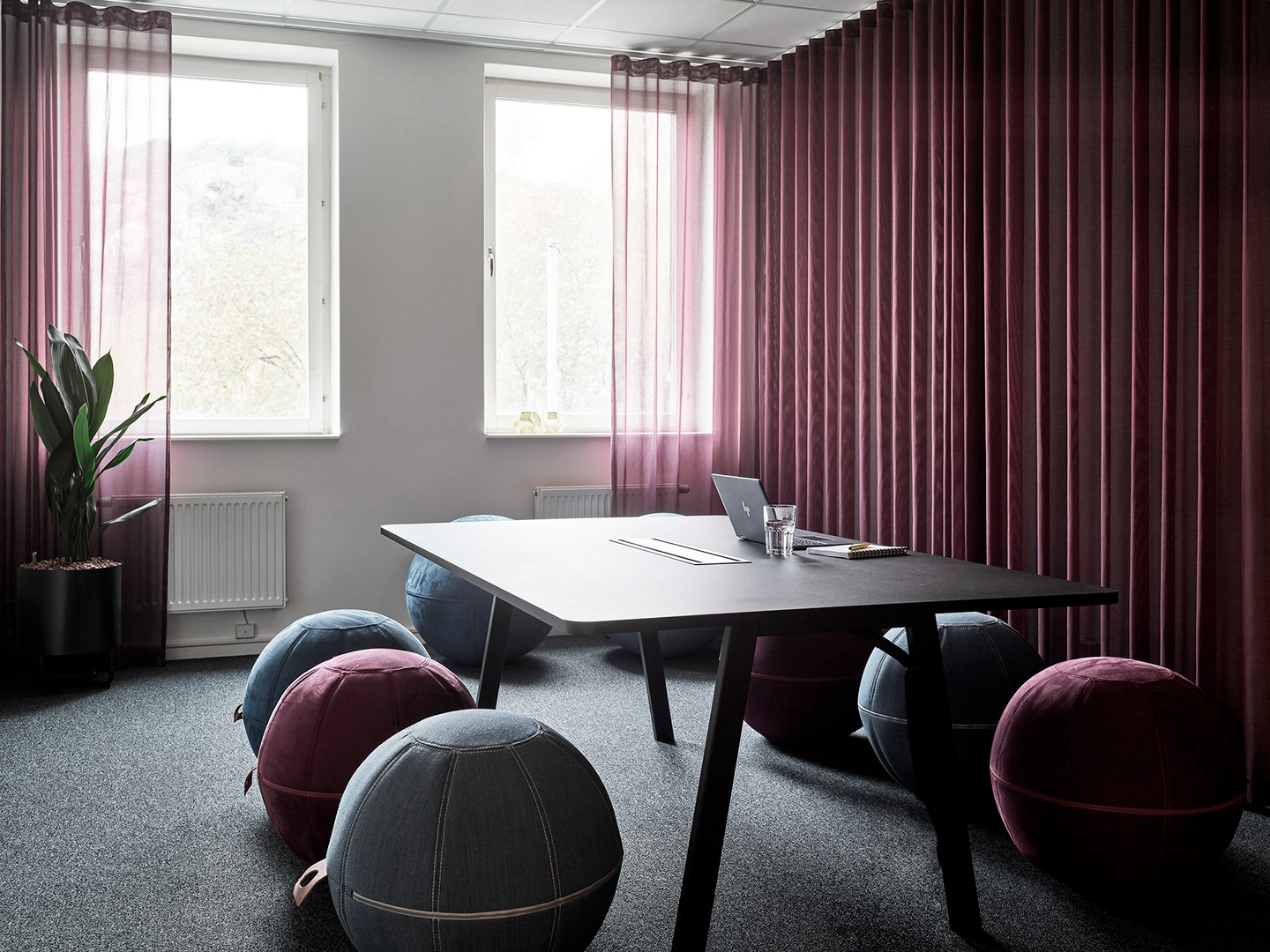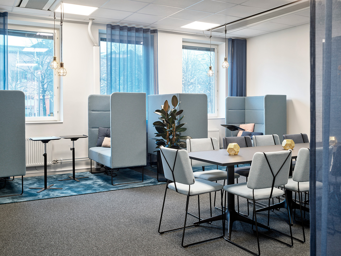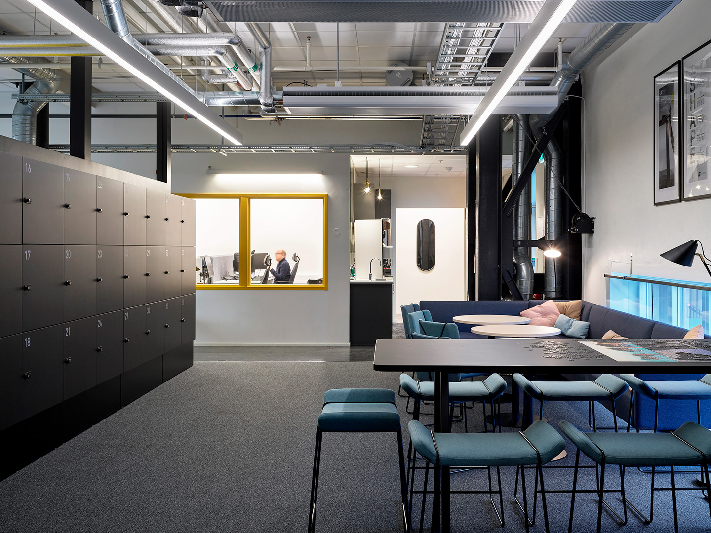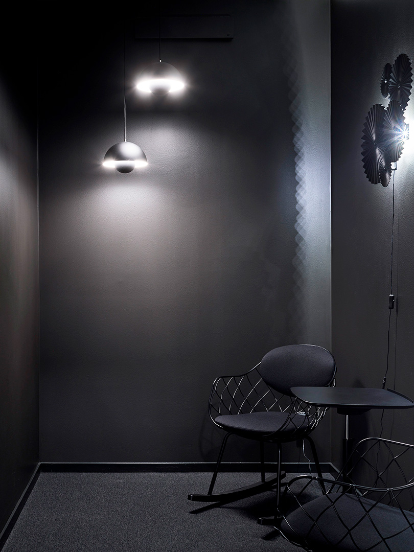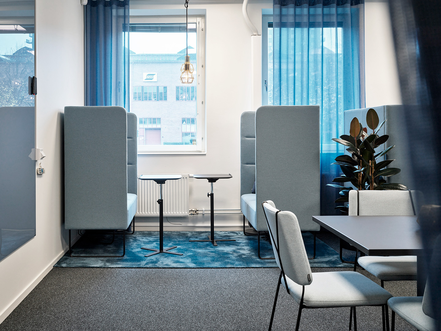 Konceptet för inredningsprojektet är just svetsning och svetslågan. Möbler, kulörer och material valdes noggrant ut för att föra tankarna till detta.