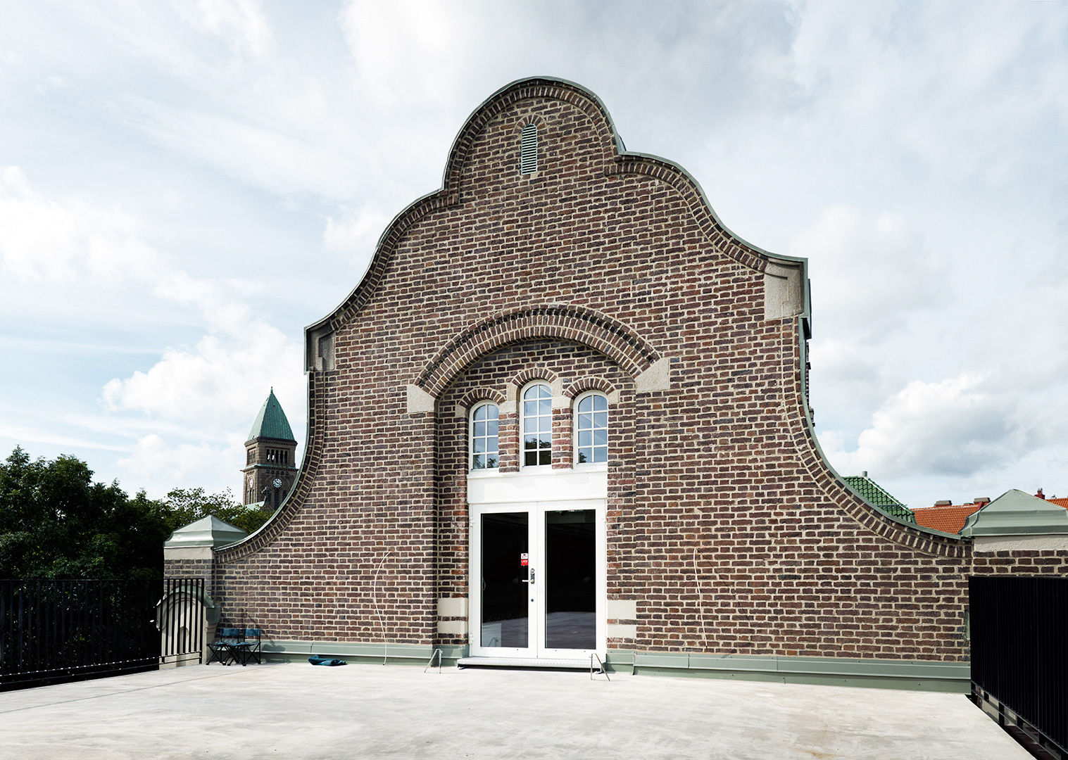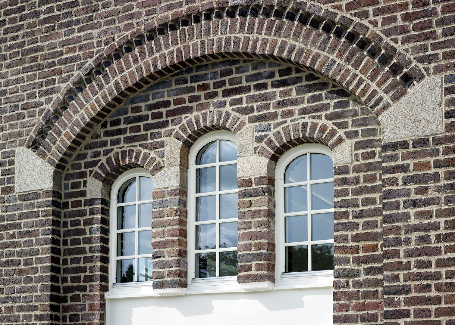 Taktegel, dörrar samt fönster har bytts ut, allt genom noggranna studier och urvalsprocess. Tegelfasaderna har renoverats, trasigt tegel har ersatts och fogarnas yttre del har frästs ur och ersatts med ny. Tegelfasadens renovering gjorde att den vackra grönskan, som vuxit på den administrativa byggnaden under lång tid, var tvungen att tas bort.