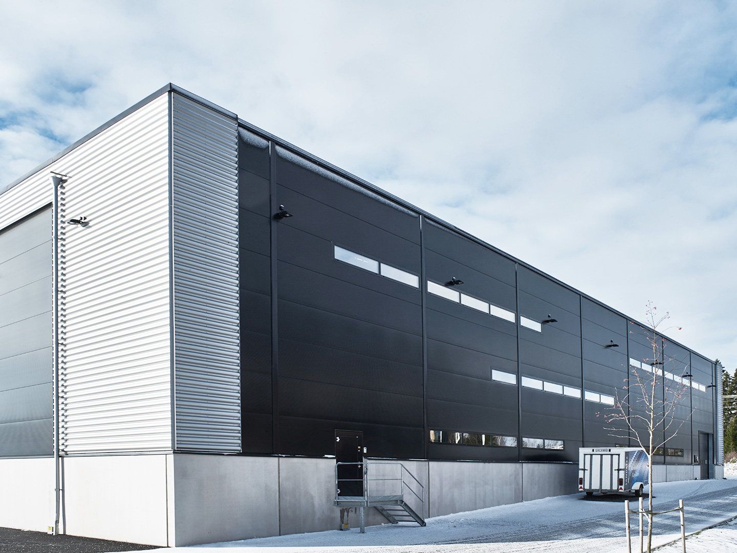 Nybyggnation av höglager, avmätning och kontor för Sandatex i Viared, Borås. Byggnaden färdigställdes 2016. BTA 3740 kvm.